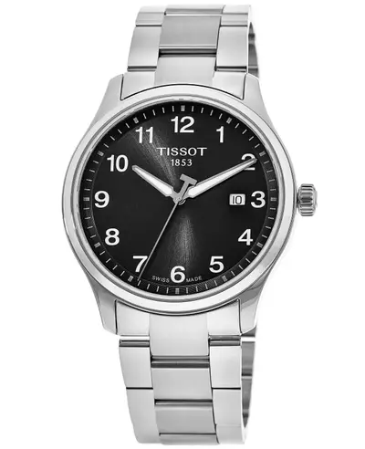A brand new authentic Tissot Classic XL men's watch with model number t116.410.11.057.00 or T116.410.11.057.00. Features a stainless steel case and band, deployment clasp with push button mechanism, fixed bezel, black dial face accented by silver tone hands and Arabic numeral markers including minute markers along the outer rim. Powered by a quartz movement using ETA Caliber F06.115 engine for accurate timekeeping. Equipped with date, hour, minute, and second functions controlled via pull and push crown. Protected by scratch-resistant sapphire crystal and solid case back. Classic round design measuring 42mm in diameter and 8.9mm thick. Rated water resistant up to 100 meters (330 feet) for everyday use including swimming. Comes with a standard 2-year WatchMaxx warranty.