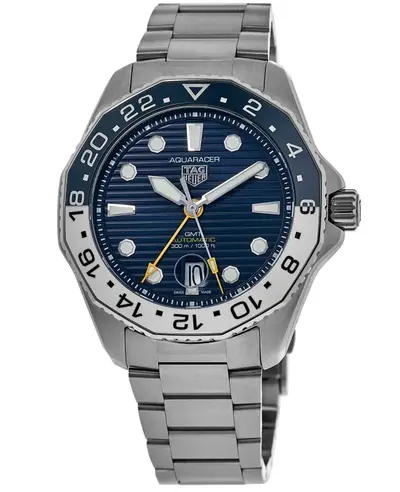 A brand new authentic Tag Heuer Aquaracer Professional model WBP2010.BA0632. Features a brushed and polished stainless steel case, a brushed stainless steel bracelet equipped with a folding clasp, a bi-directional bezel. The blue dial includes silver tone hands and dot/index hour markers with minute trackings around the perimeter. Powered by an automatic movement using Tag Heuer Calibre 7 technology offering 50 hours power reserve for functions like date display and gmt timekeeping. Round case shape measuring 43mm in diameter, solid case back. Water resistant up to 300 meters or approximately 990 feet.