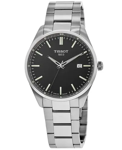 Brushed and polished stainless steel case with smooth bezel; black dial featuring luminous silver tone stick hour markers at minute intervals around outer rim and date window at 3 o'clock; brushed and polished stainless steel deployment clasp with push button mechanism available for strap change; sapphire crystal scratch resistant lens; Swiss quartz movement powering analog hours minutes seconds display plus digital chronograph sub-dials including a battery end of life indicator; round case size 40mm thickness 8.30mm solid case back; water resistance up to 100 meters (approximately 330 feet); comes with standard 2-year WatchMaxx warranty covering parts and service against manufacturing defects