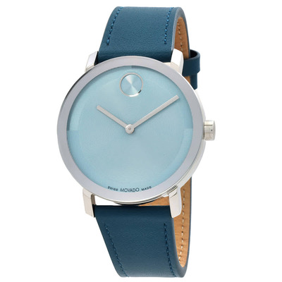 Silver-tone stainless steel case with a blue leather strap. Fixed silver-tone stainless steel bezel. Blue dial with silver-tone hands. Dial Type: Analog. Quartz movement. Scratch resistant K1 crystal. Pull / push crown. Solid case back. Round case shape, case size: 40 mm. Buckle clasp. Water resistant at 30 meters / 100 feet. Functions: hour, minute. Bold Evolution 2.0 Series. Casual watch style. Watch label: Swiss Made. Movado Bold Evolution 2.0 Quartz Blue Dial Unisex Watch 3601148.