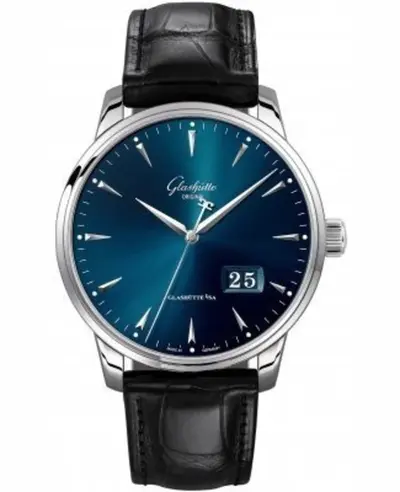 Brand new authentic Glashutte Original Senator Excellence. Panorama date movement with automatic winding powered by Caliber 36-03 offering a 100-hour power reserve. Features include scratch-resistant sapphire crystal, fixed bezel, black alligator leather strap and deployment clasp on a stainless steel case of round shape measuring 42mm diameter and 12.20mm thickness. Includes date function, is water resistant to 50 meters (approx. 165 feet) with a transparent sapphire back cover.