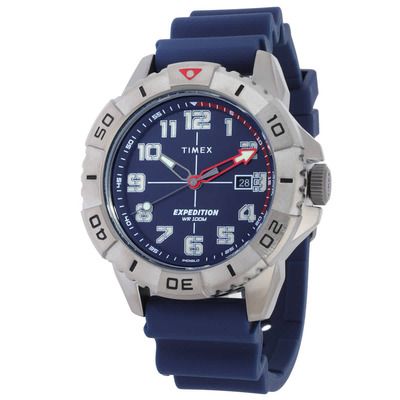 Titanium brass case, blue silicone strap. Features a unidirectional rotating titanium bezel with brass accents and Arabic numeral hour markers alongside minute markers on the outer rim. Analog dial displaying date at 3 o'clock position. Powered by quartz movement with scratch-resistant mineral crystal. Equipped with pull/push crown and solid case back. Round shape, size 42mm, thickness 13mm; band width is 20mm secured via buckle clasp. Water resistant to 100 meters / 330 feet depth. Functions include timekeeping for hours, minutes, seconds and date display.