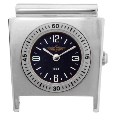 Silver-tone stainless steel case. Blue dial with silver-tone hands and index-Arabic numeral hour markers. Solid case back. Functions include hour and minute reading only. Swiss Made watch label. Allows simultaneous viewing of two time zones on an existing Breitling strap or bracelet.