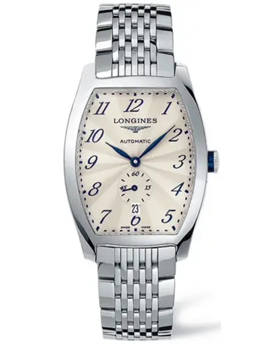 Longines Evidетenza Automatic Mens Watch Model L2.642.4.73.6, automatic self-winding movement, stainless steel case, stainless steel bracelet band, deployment buckle clasp, ceramic indices on white dial, sapphire crystal with anti-reflective coating, water resistant up to 100 feet (30 meters), classic round design, comes in excellent new condition.