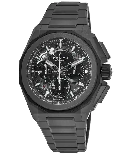 Authentic Zenith Defy Extreme Skeleton Dial Men's Watch model 97.9100.9004/02.i001, featuring a titanium case and grey metal bracelet with folding clasp.