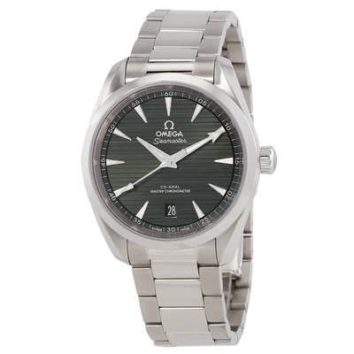 Sport watch, Swiss Made. Silver-tone stainless steel case shape round, size 38 mm thickness 12.2 mm. Bracelet is silver-tone stainless steel fold over clasp with safety release. Sapphire crystal bezel fixed and scratch resistant sapphire crystal dial cover. Green dial features analog display, index hour markers, silver tone hands, minute scale inner rim, luminous coating on hands and markers for night readability. Date at 6 o'clock position. Powered by automatic Omega Calibre 8800 movement with 35 Jewels operating frequency 25200 vph power reserve approx 55 hours. Water resistant to 150 meters / 500 feet.