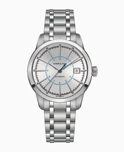 A stainless steel case with a stainless steel folding clasp, this watch features a silver dial accented by silver index hour markers. Powered by an automatic self-winding movement equipped for an 80 hours power reserve and protected by a scratch-resistant sapphire crystal. The round case measures 40mm in diameter and has a transparent case back. Rated at 50 meters or 165 feet water resistance, it includes the WatchMaxx warranty covering two years from the date of purchase.