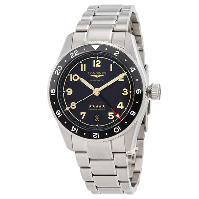 Titanium case, black ceramic bezel rotating bidirectionally, anthracite dial featuring gold-tone hands and Arabic numeral hour markers with minute track around the outer rim. Includes date display at 6 o'clock position. Powered by Longines Calibre L844.4 automatic movement offering a 72-hour power reserve. Equipped with scratch-resistant sapphire crystal glass, screw-down case back, and is water resistant up to 100 meters (330 feet). Watch has second hand function.