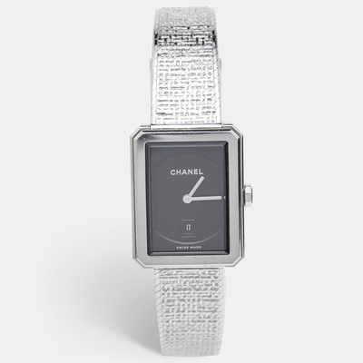 A Chanel designer watch known for its skillful craftsmanship and understated charm. It features a sturdy stainless steel case with a distinctive tweed element, measuring 26.70 mm in diameter (reference number 1054534). This elegant timepiece meticulously blends innovative design elements with flawless style to present sophisticated sophistication.