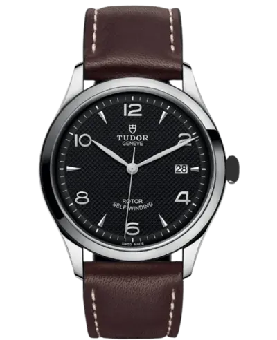 Brand New Tudor 1926 model M91550-0008. Automatic self-winding movement, Date function, Hour, Minute, Second display. Round case size 39mm. Black dial featuring silver tone hands and Arabic numeral/index hour markers with minute markers on the outer rim. Equipped with a stainless steel bracelet and leather strap (typically brown). Water resistant to 100 meters (approximately 330 feet). Comes with a 2-year WatchMaxx warranty. Also known by model #M915500008.