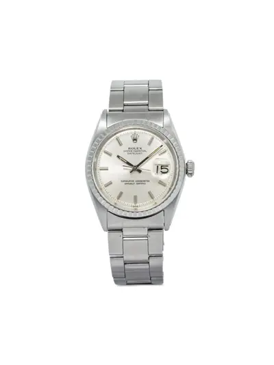 Pre-owned Rolex Datejust model from year with a 36mm white stainless steel round case featuring a fluted bezel and Cyclops lens date aperture. Equipped with automatic mechanical movement, an index dial displaying stick hands. Finished with screw-down crown, Oyster Perpetual case back, standard bracelet fitted to a deployant clasp. Comes with boutique warranty.
