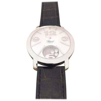 Analog Cartier Louis Apologue ladies' watch with automatic movement, rose gold case and black calfskin strap. Features a mother of pearl dial accented by Roman numeral hour markers, sapphire crystal glass, and an elegant bezel design. Equipped with date functionality.