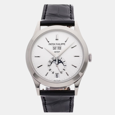 A pre-owned Patek Philippe Calatrava model 5108G. Features a white gold case measuring 37 mm in diameter, a minimalist white dial displaying timeless elegance, and is equipped with an automatic movement representing refined craftsmanship. It belongs to the original series identified by part number 1166582.