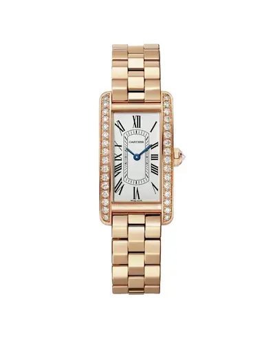wjta0056 Cartier Tank Americaine Small Quartz Silver Dial Diamond 18K Rose Gold Women's Watch