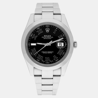 A men's automatic stainless steel Rolex Datejust II watch. Features a black dial, a 41mm stainless steel case, and is known for its clean design and reliable performance suitable for daily wear including office settings and casual occasions.