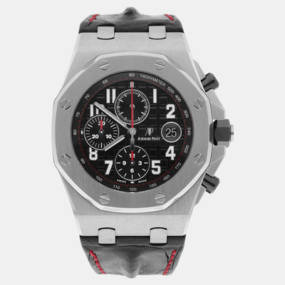 Men's automatic mechanical movement stainless steel bracelet watch with black sunray dial. Features black indices and baton hands on the central dial, date display at 3 o'clock position, sapphire crystal glass with anti-reflective coating for enhanced legibility, case diameter 42 mm crafted from polished and brushed stainless steel, screw-in caseback ensuring water resistance up to a certain depth typically suitable for recreational activities. Represents luxury, precision engineering, heritage design cues including octagonal bezel with tachymeter scale.