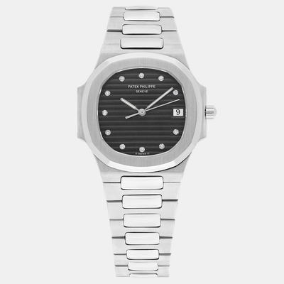 Authentic Patek Philippe Nautilus. Model 3900/1. Features a quartz movement, silver-tone stainless steel case and bracelet. Elegant women's wristwatch with a diameter of 33 mm.