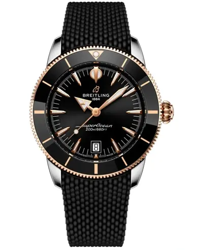 Authentic Breitling Superocean Heritage B31 model ub3111241b1s1. Polished 18k rose gold and stainless steel case with polished 18k rose gold bracelet or strap details (as applicable). Includes a Stainless Steel Folding Clasp on the bracelet/strap. Fixed Minute Scale Bezel.