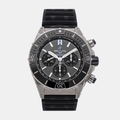 Men’s Wristwatch Breitling Super Chronomat, Model: B01, Reference: EB0136251M1S1. Feature automatic mechanical movement for reliable timekeeping, black titanium bezel and case with a diameter of 44mm. Combines high performance chronograph functionality inspired by daring aerobatic squadrons with sophisticated design suitable for both action-oriented adventures and formal events.