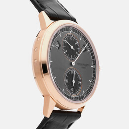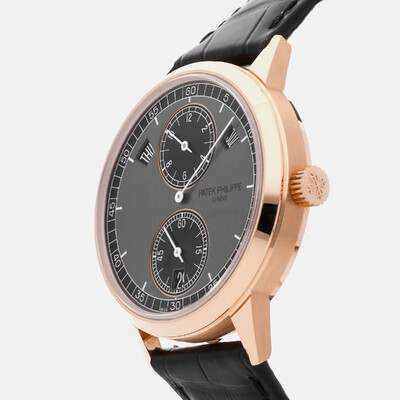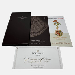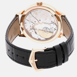 A pre-owned timepiece featuring an annual calendar complication requiring adjustment only once a year, an automatic mechanical movement ensuring precision without manual winding, and a regulator style display distinctly separating hours, minutes, and seconds. Measuring 40 mm in diameter, this men's watch exemplifies Patek Philippe's commitment to blending technical ingenuity with refined elegance.