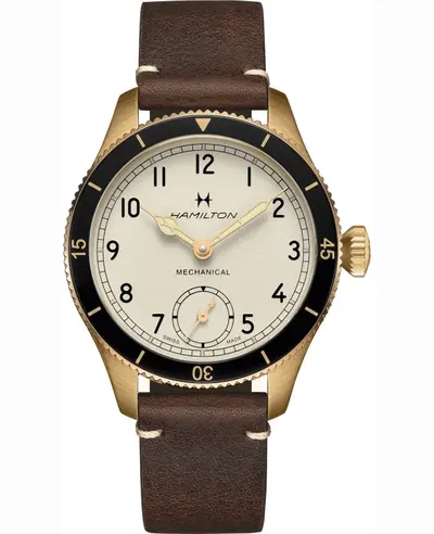 Hamilton Watch H76709510: Khaki Aviation Pilot Pioneer Mechanical White Dial Leather Strap Men's