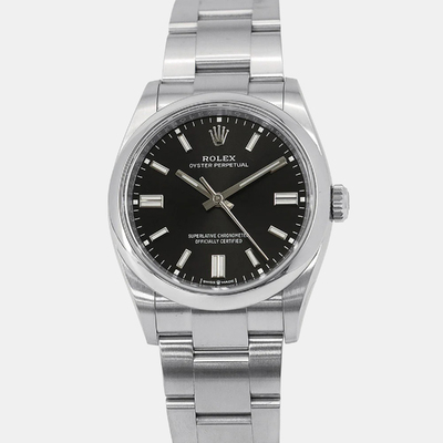 Rolex model Oyster Perpetual, reference number 126000. Features an automatic mechanical movement. Constructed from black stainless steel case measuring 36 mm in diameter. Equipped with a standard Rolex winding system ensuring perpetual power reserve. Includes the original item article code: 1212034.