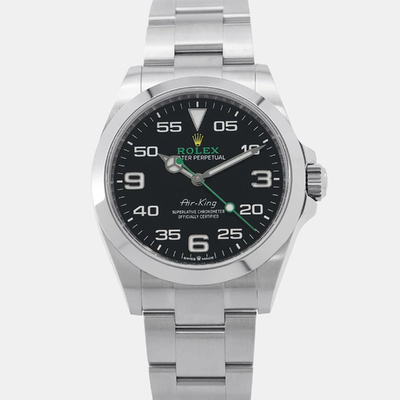 A men's automatic Rolex black stainless steel 40 mm wristwatch, model 126900 featuring an aviation heritage design. Equipped with a clear black dial and automatic movement.