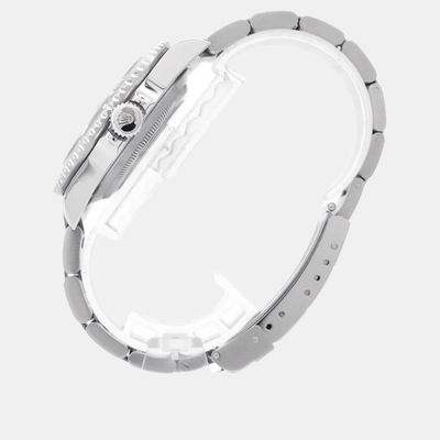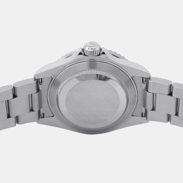 Automatic mechanical movement. Black dial with luminous blue dot hour markers and Mercedes intarsia guilloché pattern. Screw-down fluted bezel in black ceramic set with multi-colored (red, blue, yellow) luminous Rolex bezel inserts for diving functionality. Date aperture at 9 o'clock position. Black stainless steel case finished with polished and brushed elements. Solid bracelet clasp secured by folding Oysterclasp™. Water resistant up to 100 meters / 330 feet (diving standard). Includes original box, papers and warranty information.
