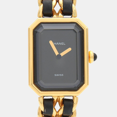 Elegant women's wristwatch from Chanel. Features a sleek design with polished case measuring 20 mm. Powered by precise quartz movement mechanism. The bezel and lugs are finished in attractive gold plated stainless steel. Boasts authentic Chanel watchmaking craftsmanship ensuring quality construction. A versatile timepiece suitable for blending seamlessly into both casual daily outfits and formal occasions.