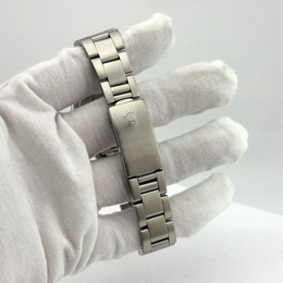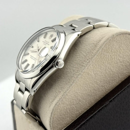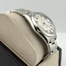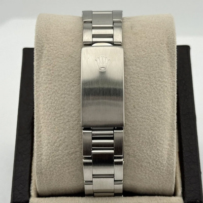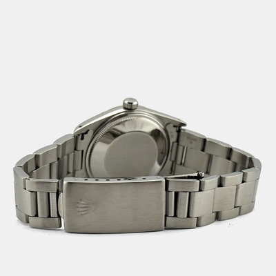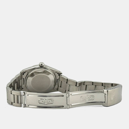 A men's wristwatch from Rolex featuring an automatic movement, a silver dial displayed within a stainless steel case measuring 34 mm in diameter and identified by reference number 1220524.