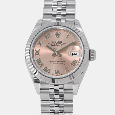Rolex Datejust 279174 Women's Wristwatch - Automatic Pink Dial with Stainless Steel Case and White Gold Fluted Bezel
