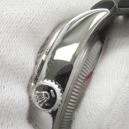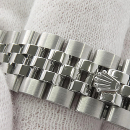 Women's automatic pink dial wristwatch featuring an 18k white gold fluted bezel and a stainless steel case. Equipped with the classic Jubilee bracelet.