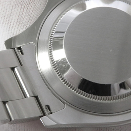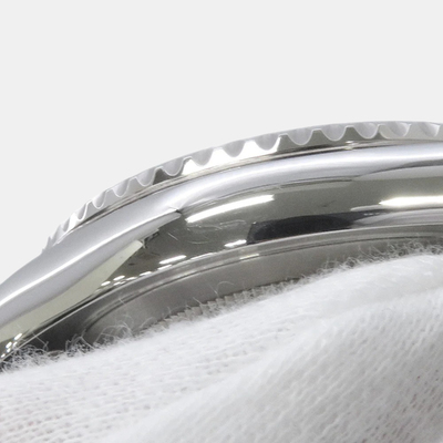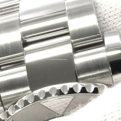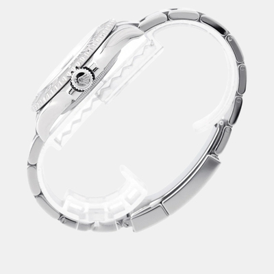 A grey sunburst dial on a stainless steel case with a platinum bezel, automatic movement, suitable for men and casual use.