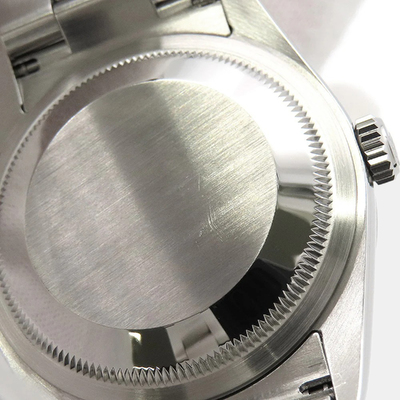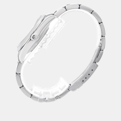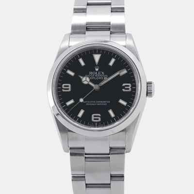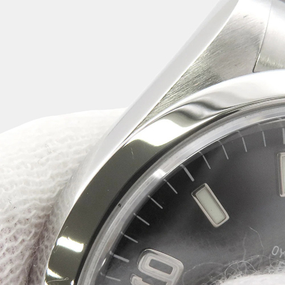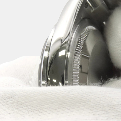 Automatic movement, Black stainless steel dial, Stainless steel case measuring 36mm in diameter, Men's wristwatch featuring a classic tache numerals layout.