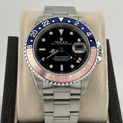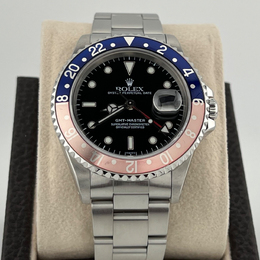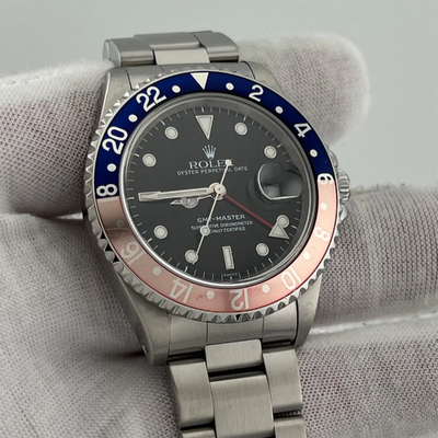Bold black dial, iconic dual time bezel with Pepsi stripes. Crafted from durable stainless steel case measuring 40 mm in diameter. Equipped with automatic movement ensuring precise timekeeping. Designed for the modern man; suitable for global travelers seeking functionality alongside style.