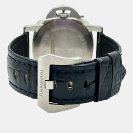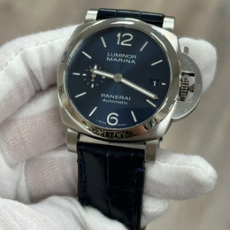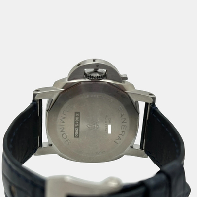 A Panerai Luminor automatic men's wristwatch with a blue dial, crafted in 40mm stainless steel. Features the brand's Italian style and sporty design suitable for everyday wear by collectors. Certified pre-owned condition.