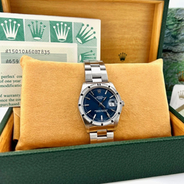 Classic form watch automatic blue dial stainless steel men's wristwatch size 34 mm reference number 122296. Known for everyday versatility and enduring charm, it features clean lines ensuring timeless appeal suitable for the purist seeking subtle sophistication.
