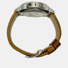 Certified pre-owned luxury watch. Features a manual winding movement, matte black titanium case specifically sized at 44mm for men.