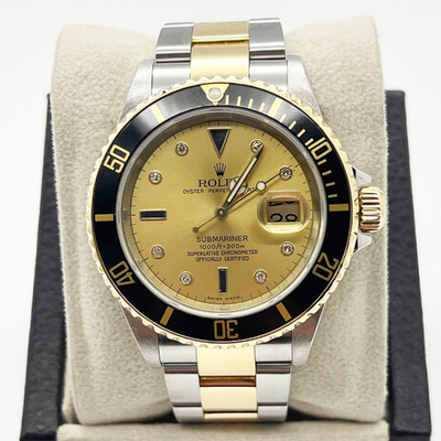 Rolex Submariner 16613 Stainless Steel and Yellow Gold Automatic Watch with Diamond Accents