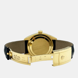 An automatic mechanical movement crafted from 18K yellow gold with a champagne dial finish. Case size is 42 mm. This men's wristwatch features a sophisticated design suitable for everyday wear and global travel.