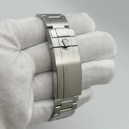 Automatic movement. Solid stainless steel case (size 41 mm). Black ceramic bezel insert. Silver-tone central hour markers. Analog display.