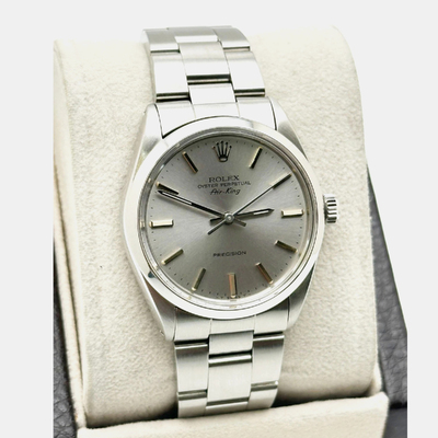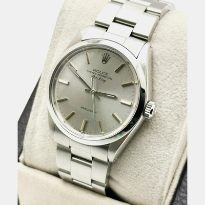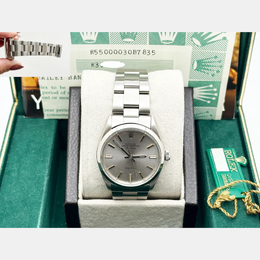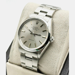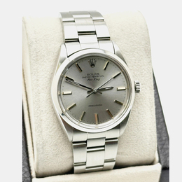 Model Reference: 1221235. Features automatic movement, silver dial with Rolex minimalism and timeless proportion. Crafted from stainless steel case and bracelet. Classic men's design echoes early aviation instruments' quiet sophistication. Known as a collector’s favorite.