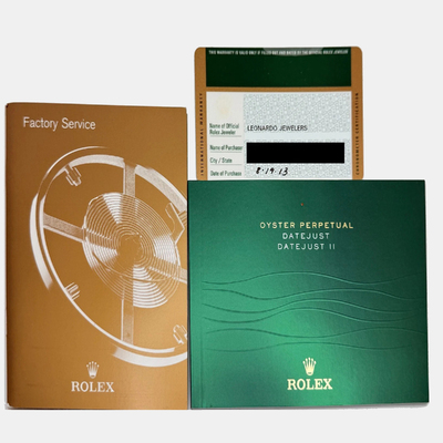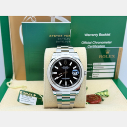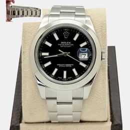 A pre-owned Rolex Datejust II model 116300. This automatic movement men's wristwatch features a black dial encased in stainless steel and measures 41 mm in diameter.