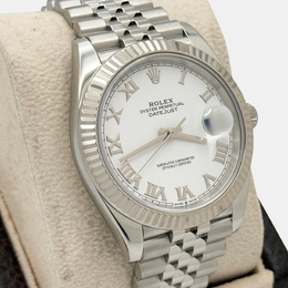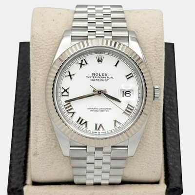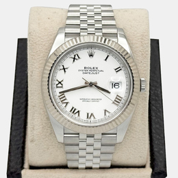 Air-Craft Grade Dial: Features a crisp white dial. Caliber: Automatic movement (reference 3135). Case Size: 41mm diameter. Material: Combines 18K white gold with stainless steel construction. Condition: Pre-owned item, ready for immediate wear or display.