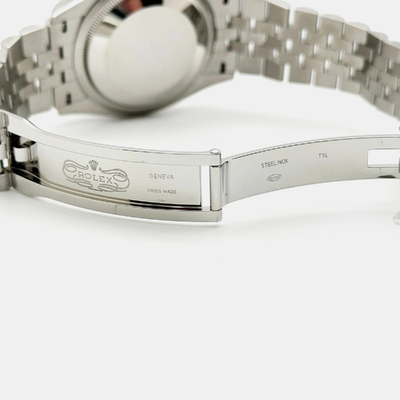 Automatic movement, black diamond dial on a stainless steel case measuring 36mm, equipped with luminous markers and a date window, features a stainless steel Jubilee bracelet.