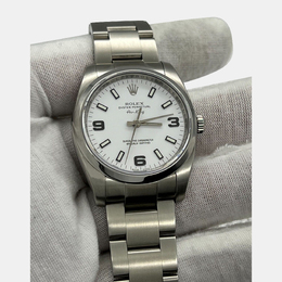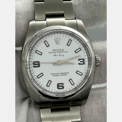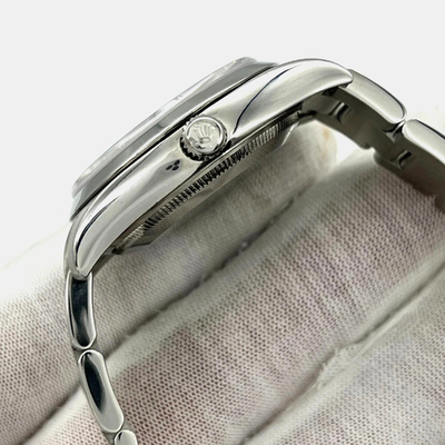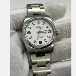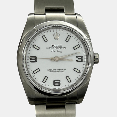 A refined expression of Rolex’s enduring aviation legacy. This timepiece features a clean white dial, sports a sleek profile, exudes quiet confidence and effortless precision. It is crafted from stainless steel, measures 34 mm for men's wrists, embodies authenticity over ostentation, designed not for display but for distinction.