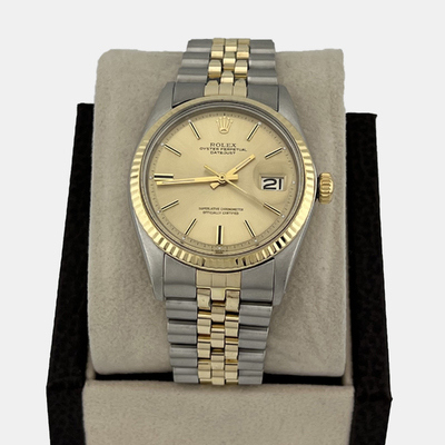 The Rolex Datejust is an authentic classic. It features a signature date window, a sapphire crystal bezel and case back, meticulous 14k yellow gold craftsmanship (stainless steel model), automatic self-winding mechanical movement, measuring 36 mm across, and serves as more than just timekeeping – it's designed to be a lifelong companion seamlessly integrating into any lifestyle.