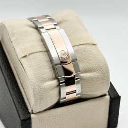 Men's Wristwatch, Material: Stainless Steel Case, Rose Gold Tone Accents and Dial Details, Dial Color: Chocolate, Bezel Type: Diamond Encrusted Solid Bracelet 18k Rose Gold Clasp Size: Approx. 31 mm lug-to-lug diameter Reference Number: 1220540