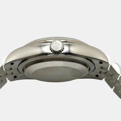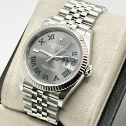 Automatic movement with Caliber 2235/2275, Black Dial featuring luminous markers, Sapphire Crystal transparent caseback, Stainless Steel case accented by white gold elements, Silver-tone bezel, Date display at the 3 o'clock position. Approximate Case Size: 36mm.