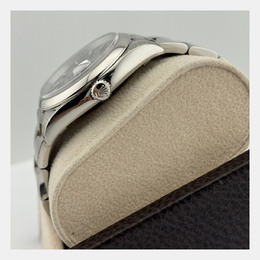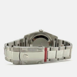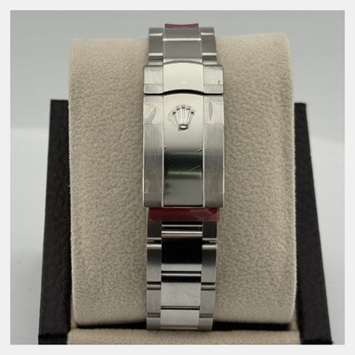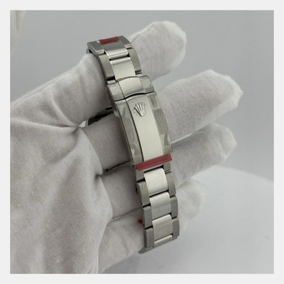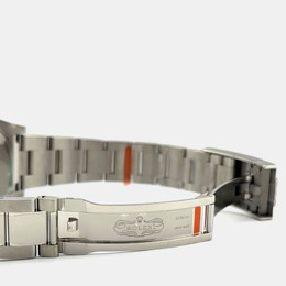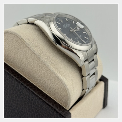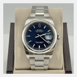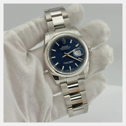 36 mm automatic movement with blue dial and stainless steel case. Features sharp Oyster bracelet.
